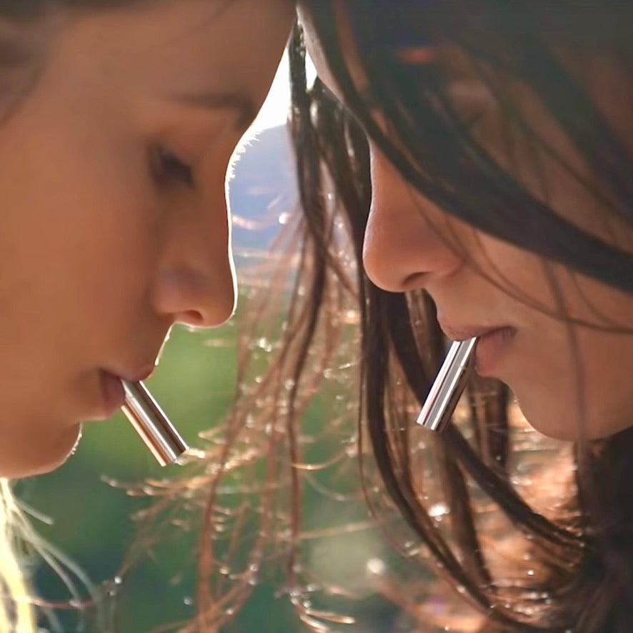 - After exhaling, inhale through your nose allowing air to flow into the center of your body. Just leave the Lovetuner between your lips as you inhale, and then exhale again with the next note.