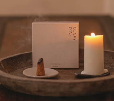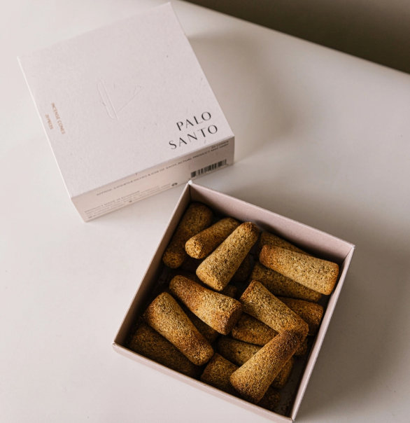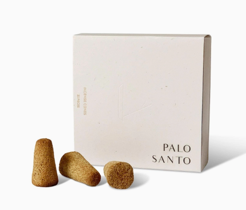 - Palo Santo Handmade Incense Cone: These premium Cones are handmade in Ecuador with sawdust of selected Palo Santo wood and vegetable gum. They are 100% natural without chemical ingredients. Scent: Pine · Mint · Lemon · Fireplace · Sweet Directions: Light the tip and blow out the flame so that only smoke is produced. Place cone on the incense burner or plate and allow the cone to linger. when finished, the smoke naturally decreases, and the fire is gradually extinguished. 20 Palo Santo Cones 20 min. burning time. Burning time are approximate, actual product may vary.