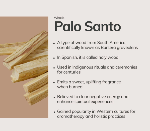 - Palo Santo Essential Oil: Also known as "Holy Wood" - Utilized by Indigenous Amazonian and Andean healers in sacred rituals for purification, attracting positive energy, and fostering peace. A 100% pure essential oil blend, free from gluten, cruelty, parabens, and phthalates.