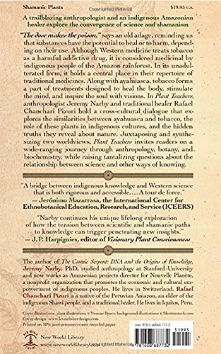 In its unadulterated form, it holds a central place in their repertoire of traditional medicines. Along with ayahuasca, tobacco forms a part of treatments designed to heal the body, stimulate the mind, and inspire the soul with visions. In Plant Teachers, anthropologist Jeremy Narby and traditional healer Rafael Chanchari Pizuri hold a cross-cultural dialogue that explores the similarities between ayahuasca and tobacco, the role of these plants in indigenous cultures, and the hidden truths they reveal about nature.