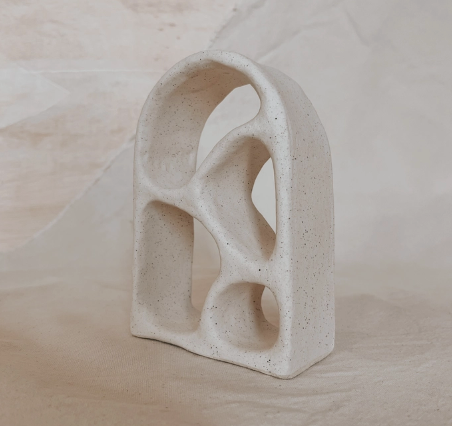 This versatile ceramic altar is designed to hold candles, incense, sacred objects, or ritual items — making it a meaningful addition to meditation corners, shrines, or personal sacred spaces. It can be displayed freestanding on a tabletop or mounted to a wall for flexible use. Each altar is handbuilt from durable earthenware clay and high-fired to 2160°F for lasting strength. The sculptural forms feels both modern and timeless.
