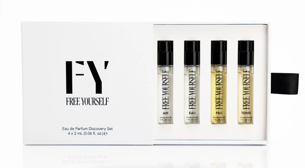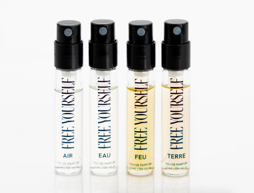 Experience “The Elements Collection” discovery set featuring four, 2ml eau de parfum samples - Air, Eau, Feu, and Terre. Each scent symbolizing the fundamental elements that define us.