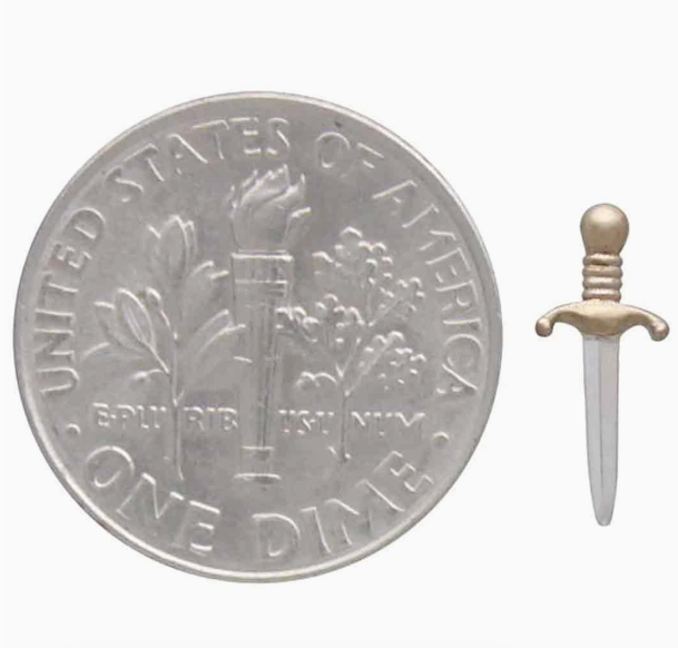 Mini Dagger Post: Add a touch of fierce, mythic energy to your collection with these mixed-metal mini dagger post earrings, a bold choice for both men and women. All parts of this mixed metal mini dagger post earrings are wonderfully detailed. From the point to the pommel, this dagger looks like the real thing. The handle of this sword is bronze and the rest of the sword is sterling silver. Ear wire and nut are also sterling silver. The pronounced quillon and the twisted grip are especially fierce! Perhaps the earliest of concealed weapons and often a warrior's last defense, daggers represent betrayal, loss, protection, valor, and sacrifice. These are the perfect talisman earrings to add to your store especially around Halloween!